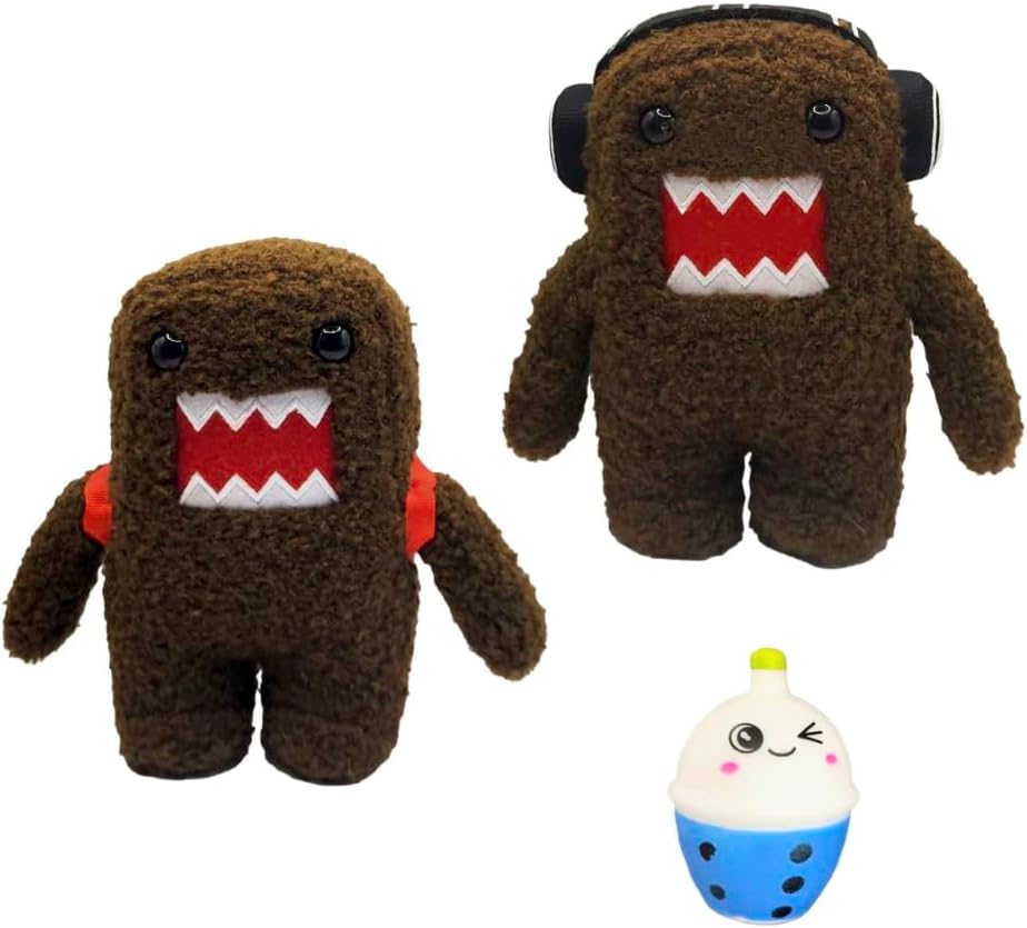 Get two adorable Domo plushies in this authentic 2-pack bundle! Each 6.5-inch Domo features the signature open mouth and fuzzy brown texture that fans love. This set includes Headphone Domo and Backpack Domo—perfect for collectors and fans of Japan's favorite fuzzy character!