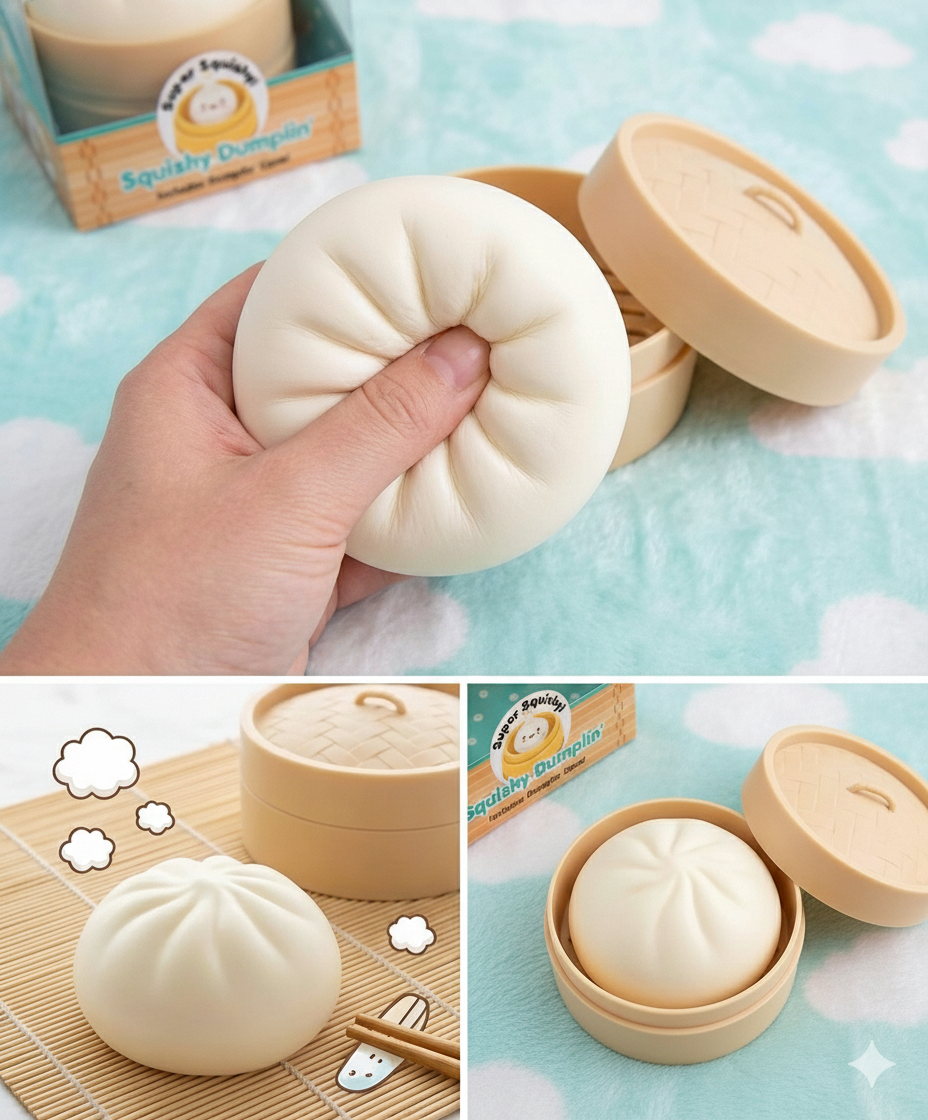Super Squishy Dumplin with Case Squeeze into cuteness with this adorable Super Squishy Dumplin! Ultra-soft and huggable, this plush pal fits perfectly in your pocket or backpack. The included protective case keeps your new friend safe during adventures, whether you're heading to school, on a road trip, or just need a cozy companion. Perfect for collectors and cuddle enthusiasts alike!
