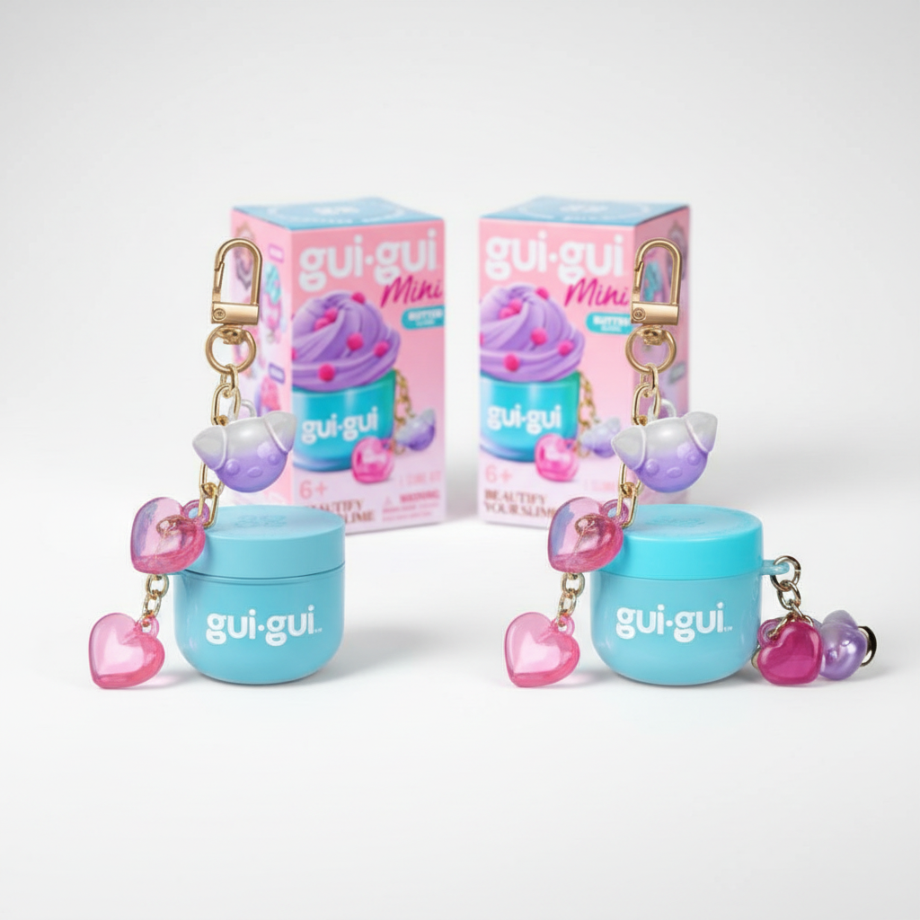 Get TWO Gui Gui Mini Slime Jar Keychains in this special bundle pack! Perfect for sharing with friends, siblings, or keeping one for home and one for on-the-go. Each adorable mini slime kit comes with a convenient keychain clip so kids can take their favorite fidget toy anywhere - attach to backpacks, lunchboxes, or keychains!