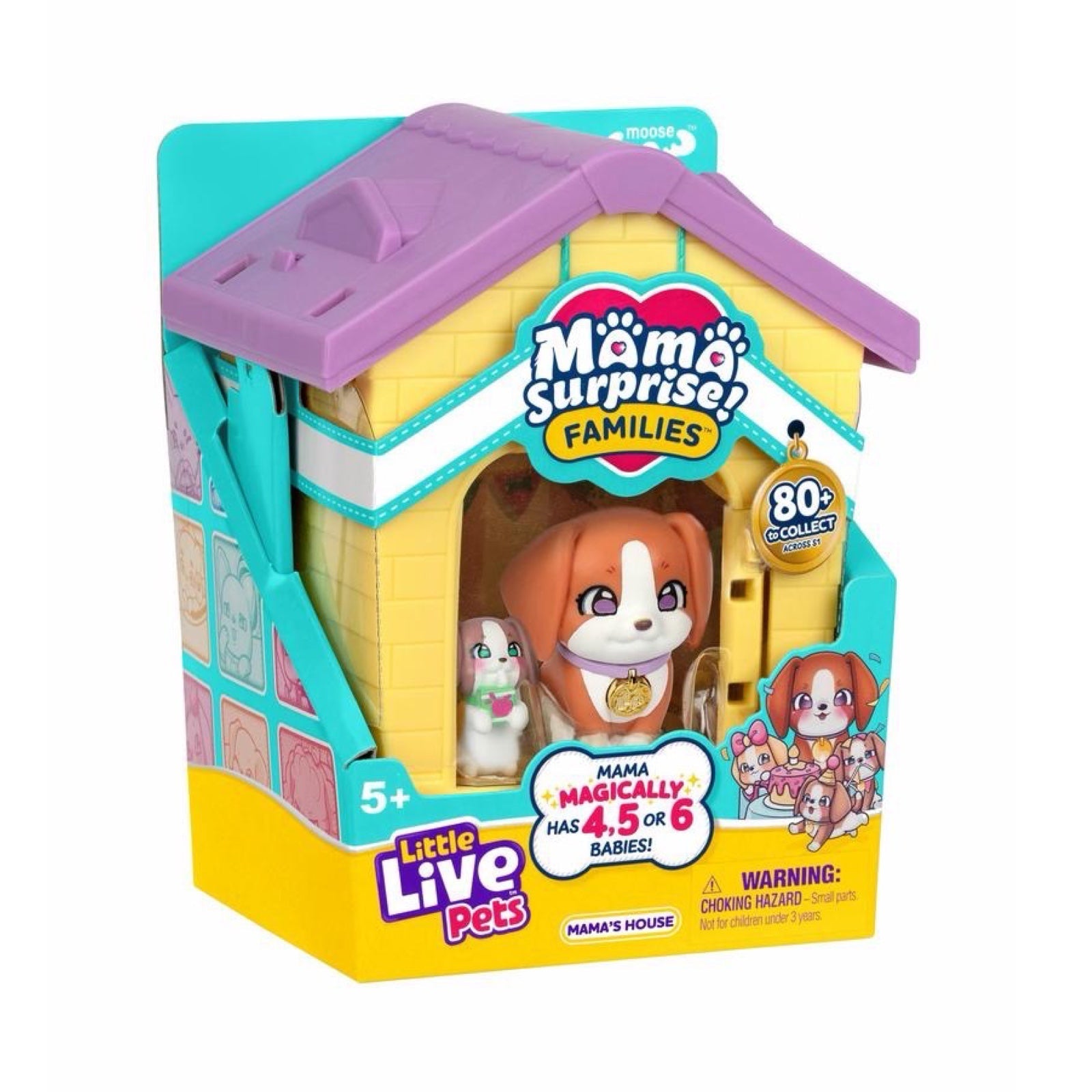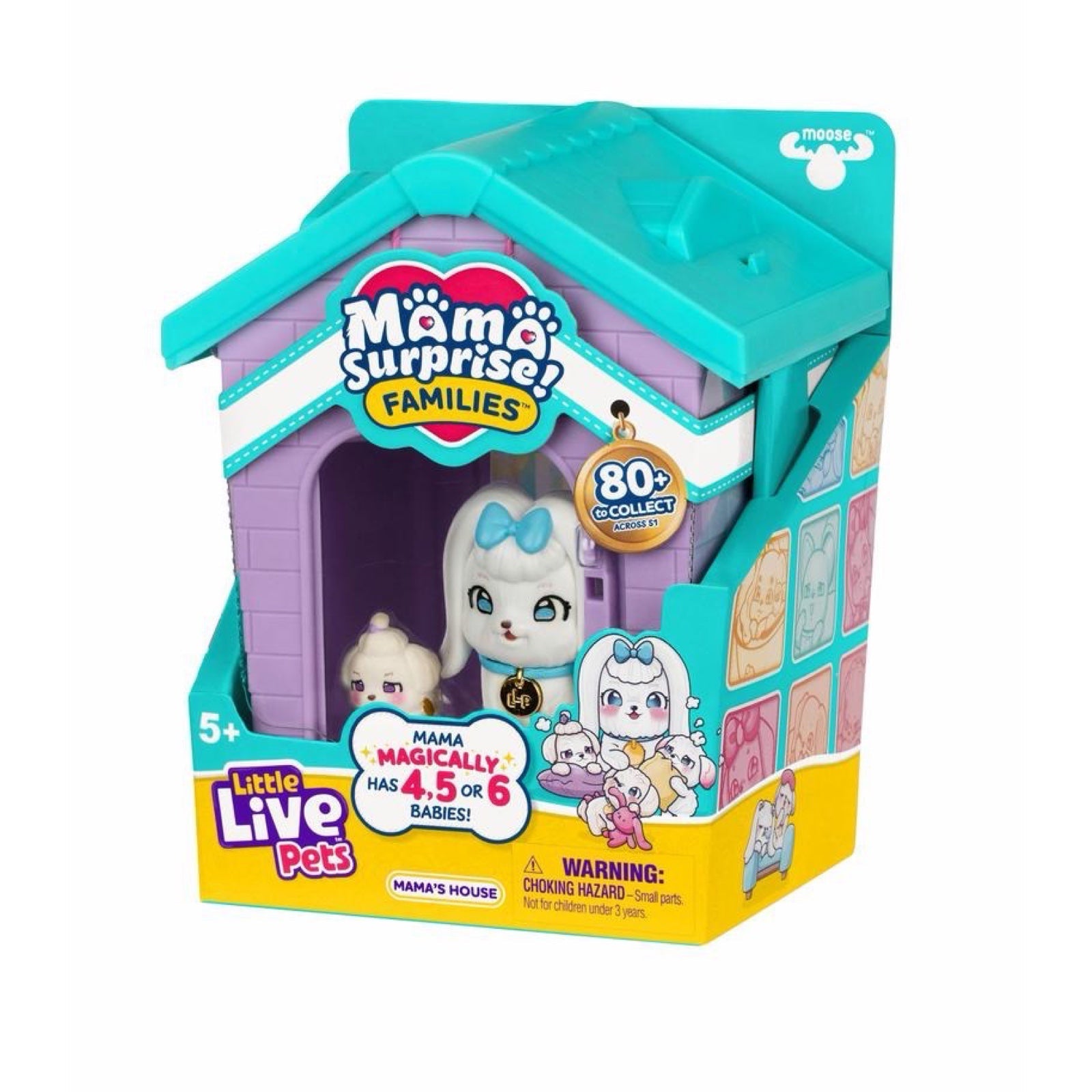 Start your family and discover the magic of surprise! The Little Live Pets™ Mama Surprise Families Mama's House is the ultimate unboxing playset where Mama magically has 4, 5, or 6 surprise babies hidden inside — you won't know how many until you open it!